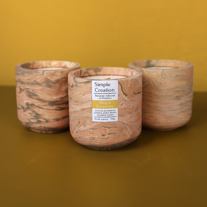 Każdą z naszą świeczkę tworzymy samodzielnie i starannie, od początku do końca. Odlewamy nie tylko wosk, ale również wytwarzamy osłonki na świece, mieszamy autorskie kompozycje zapachowe, naklejamy etykiety i starannie pakujemy każdy produkt. Dzięki temu nasze świeczki są unikalne i pełne serca – to prawdziwe rękodzieło, które wyróżnia się w każdym detalu.