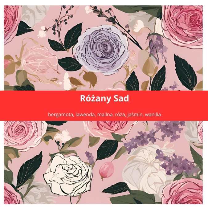 Świeca „Różany Sad” to kompozycja zapachowa, która przenosi Cię do malowniczych ogrodów pełnych kwitnących róż i owocowych akcentów. Jej zapach otwiera się odświeżającą nutą bergamoty i lawendy, które wprowadzają do wnętrza subtelną harmonię i spokój. To jak poranek w ogrodzie, kiedy w powietrzu czuć zapach wilgotnej ziemi i pierwsze promienie słońca. W sercu tej wyjątkowej świecy znajdują się nuty maliny, róży i jaśminu, które nadają kompozycji kwiatową elegancję i lekko owocowy akcent. Malina wprowadza słodką, soczystą świeżość, która doskonale harmonizuje z delikatnym zapachem róży i jaśminu, tworząc zapach pełen subtelności i romantyzmu. Baza kompozycji to ciepłe, drzewne nuty drzewa sandałowego, paczuli i cedru. Te elementy nadają świecy głębię i zmysłowość, tworząc trwały, wyrafinowany zapach, który wypełnia przestrzeń przytulnym, leśnym akcentem.